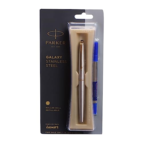 Parker Galaxy Stainless Steel Gold Trim Roller Ball Pen - Blue Ink, Pack Of 1