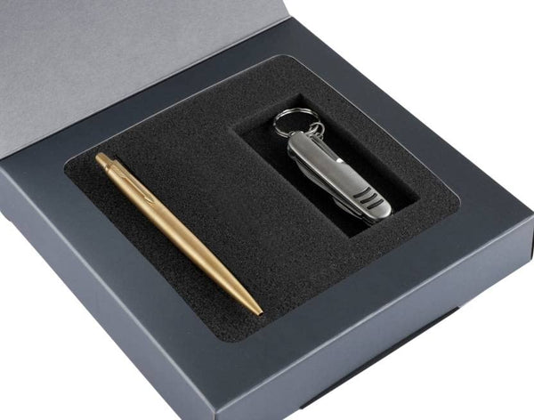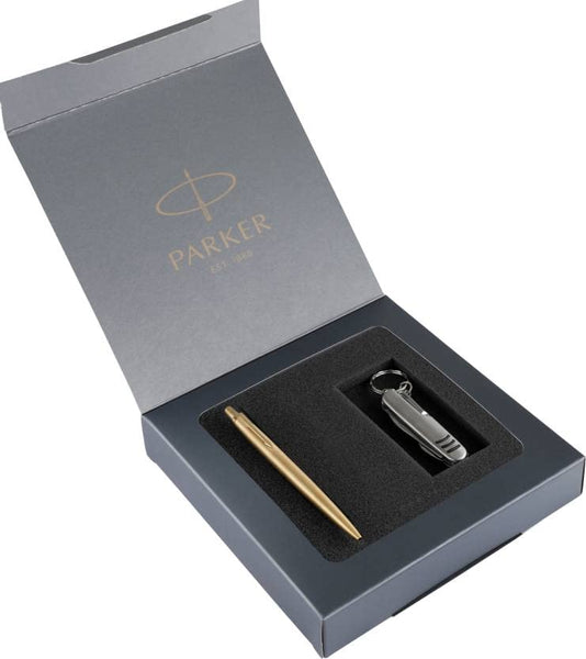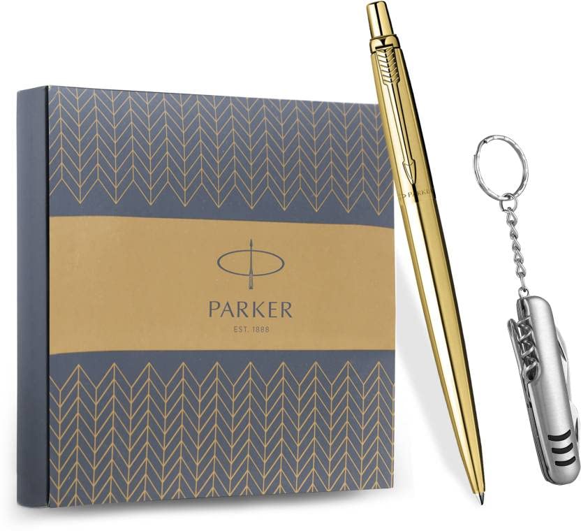 Parker Jotter Gold Ball Pen with Multi-Utility Knife Keychain Pen Gift Set - Blue Ink, Pack Of 1