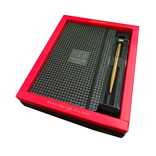 Parker Galaxy Gold Ballpoint Pen with A5 Houndstooth Print Notebook - Gold Ink, Pack Of 1