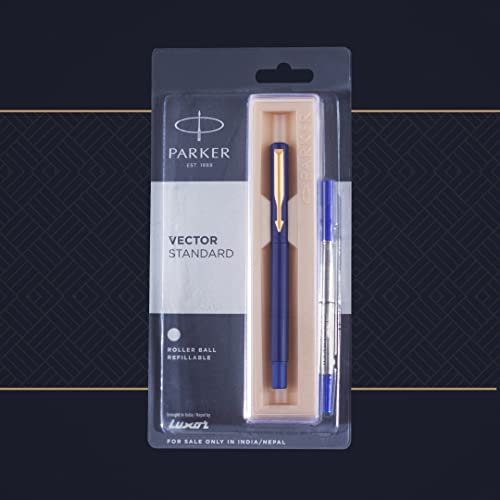 Parker Vector Standard Gold Trim Roller Ball Pen - Blue Ink, Pack Of 1