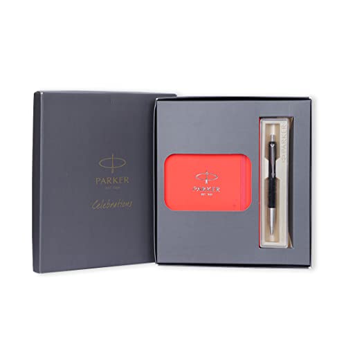 Parker Vector Standard Chrome Trim Roller Ball Pen With Red Notebook Gift Set - Blue Ink, Pack Of 1