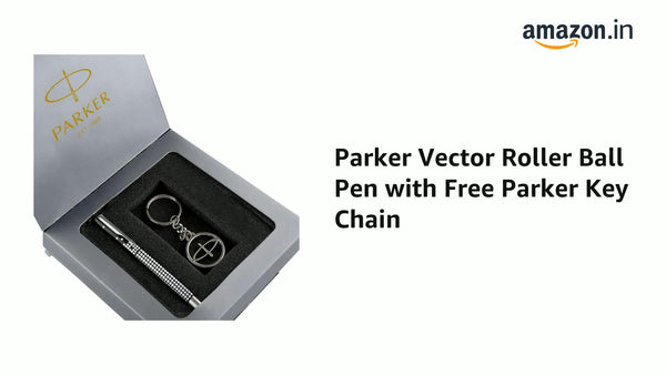 Parker Vector Special Edition Roller Ball Pen Chrome Trim With Keychain Gift Set - Blue Ink, Pack Of 1