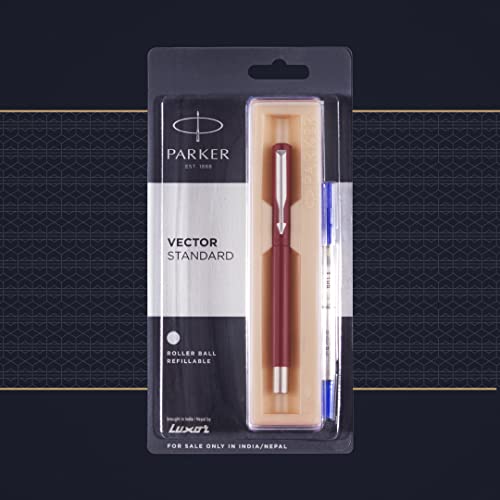 Parker Vector Standard Chrome Trim Roller Ball Pen - Blue Ink, Pack Of 1