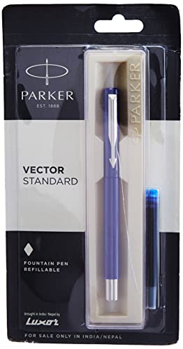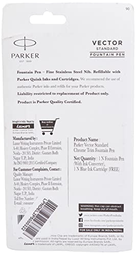 Parker Vector Standard Chrome Trim Fountain Pen - Blue Ink, Pack Of 1