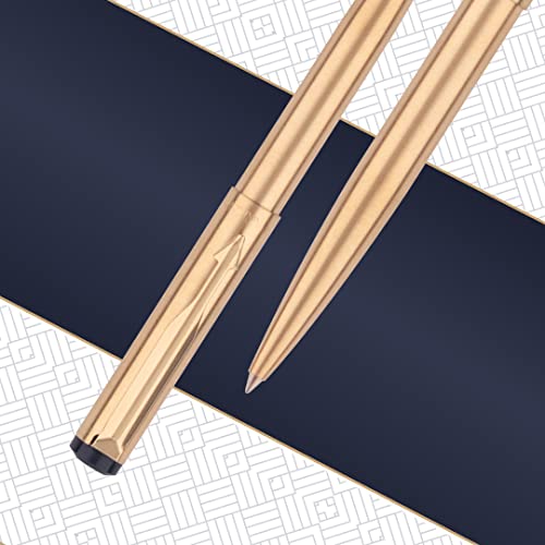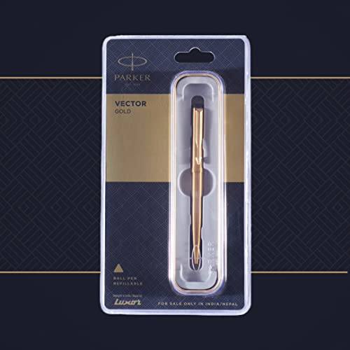 Parker Vector Chrome Trim Stainless Steel Gold Ball Pen - Blue Ink, Pack Of 1