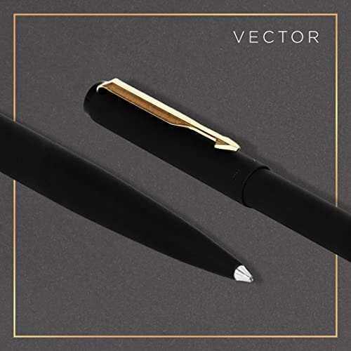 Parker Vector Matte Black Ball Pen With Card Holder - Blue Ink, Pack Of 1