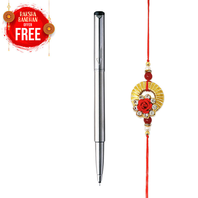 Parker Vector Stainless Steel Roller Ball Pen - Blue Ink, Pack Of 1