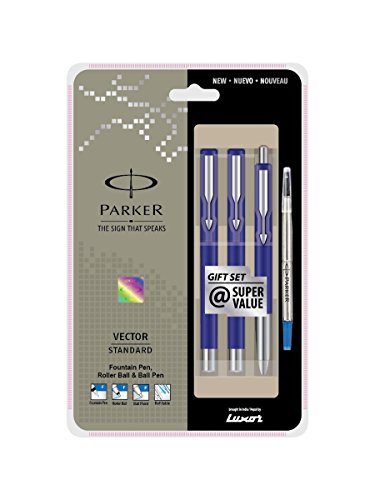 Parker Vector Standard Fountain Pen, Roller Ball Pen and Ball Pen Blue Body Combo Pack - Blue Ink, Pack Of 1