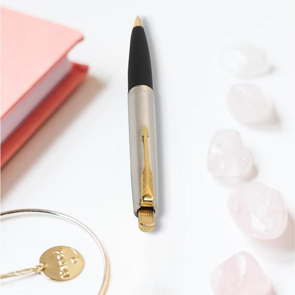 Parker Frontier Stainless Steel Gold Trim Ball Pen - Blue Ink, Pack Of 1