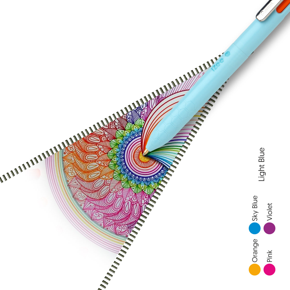 Pentel iZee 4 in 1 Color Pen - Orange Pink Sky Blue & Violet Ink