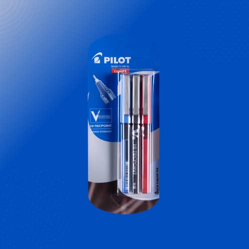 Pilot V5 Liquid Ink Roller Ball Pen - 1Blue + 1Black + 1Red