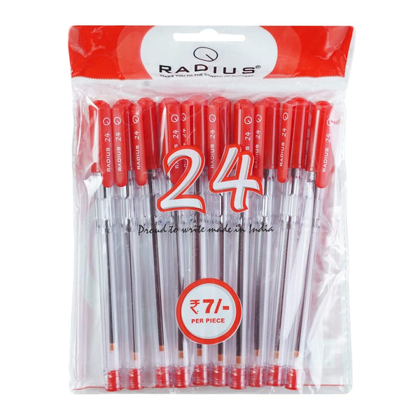 Radius 24, 0.7mm Ball Pen - Red Ink, Pack of 10