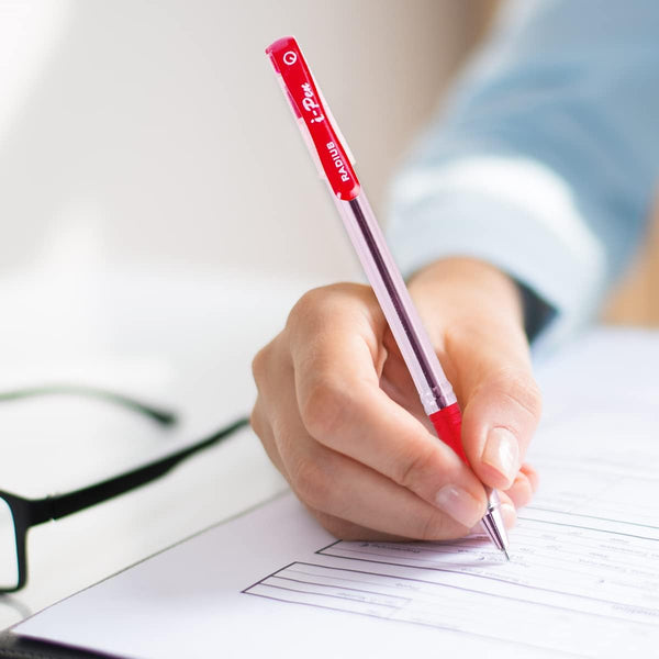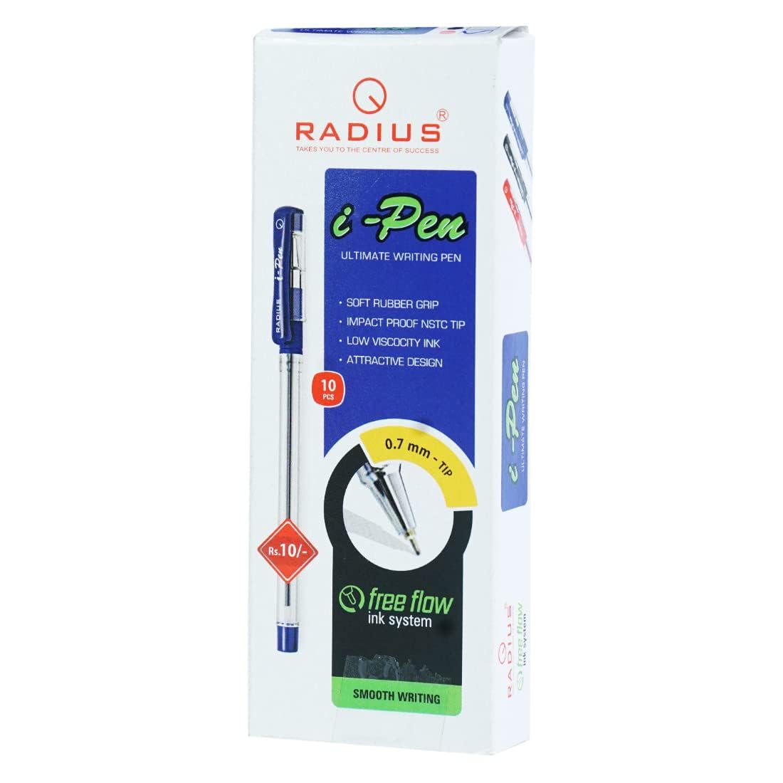 Radius i-Pen Push Cap, 0.7mm Ball Point Pen - Red Ink, Pack of 10