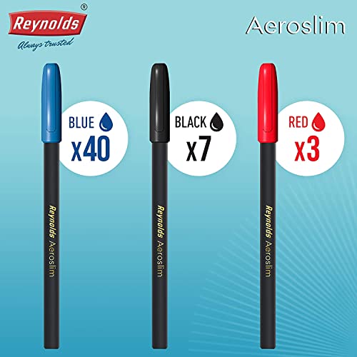 Reynolds Aeroslim 0.7mm Ball Pen - Blue Ink, Pack of 50