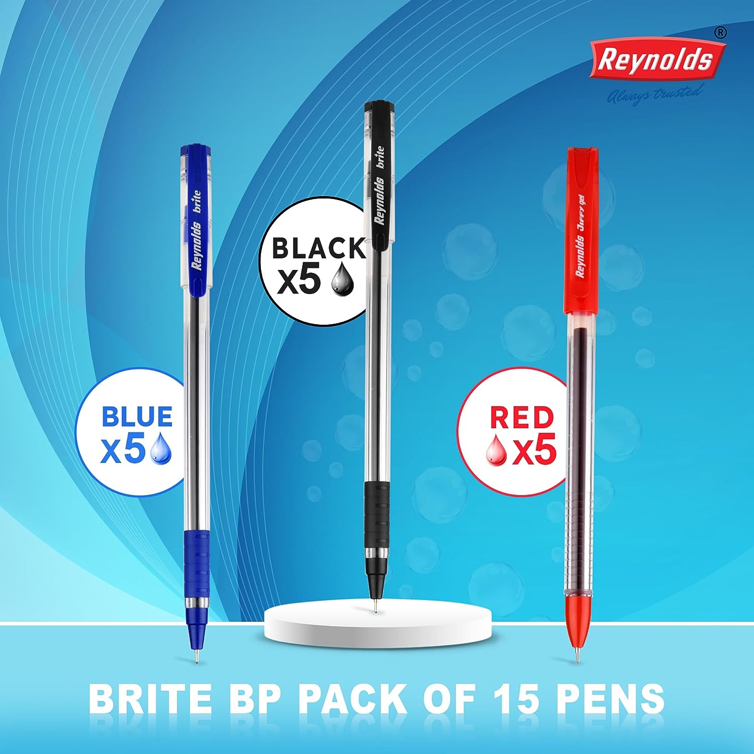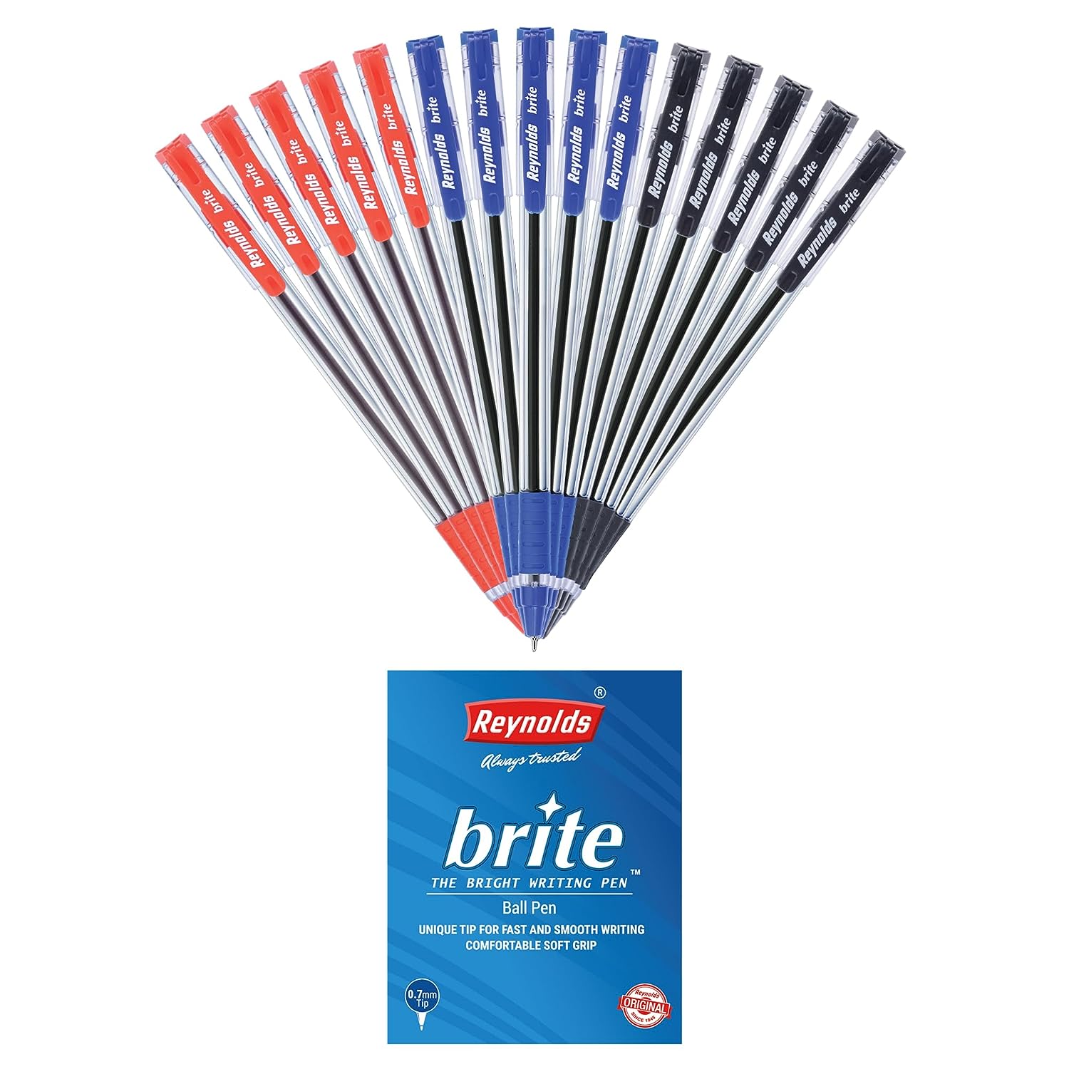 Reynolds Brite 0.7mm Ball Pen - 15 Blue, 5 Black & 5 Red, Pack of 25