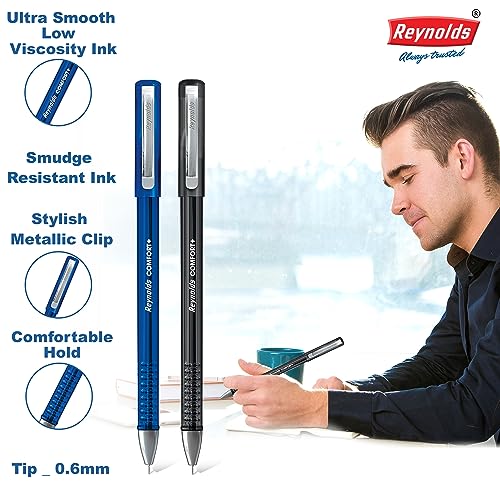 Reynolds Comfort 0.6mm Ball Pen - Blue Ink, Pack of 10