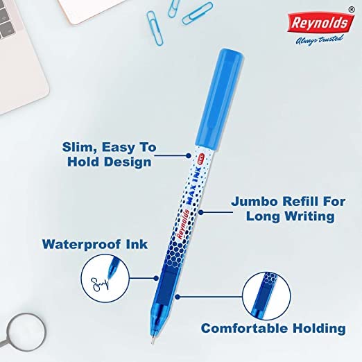 Reynolds Maxink 0.5mm Ball Pen - Blue Ink, Pack of 10