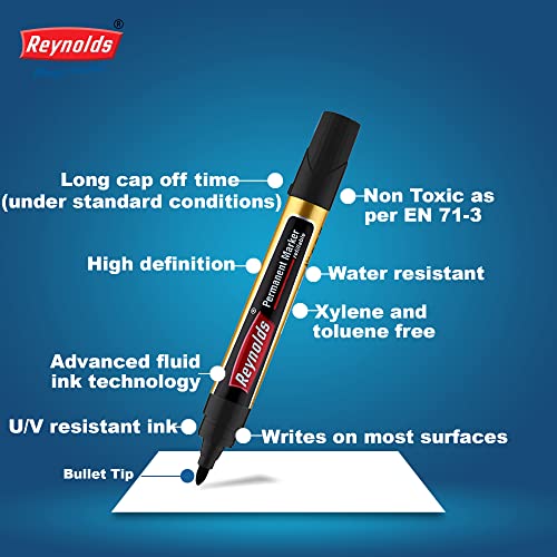 Reynolds permanent marker - Black Ink, Pack of 10
