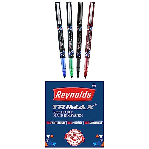 Reynolds Trimax 0.5mm Gel Pen - 2 Blue, 1 Black, 1 Red & 1 Green, Pack of 5