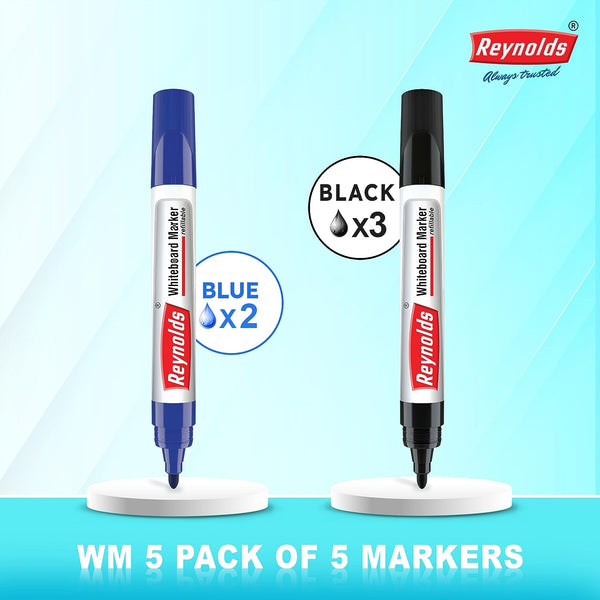 Reynolds Whiteboard Marker - 2 Blue & 3 Black, Pack of 5