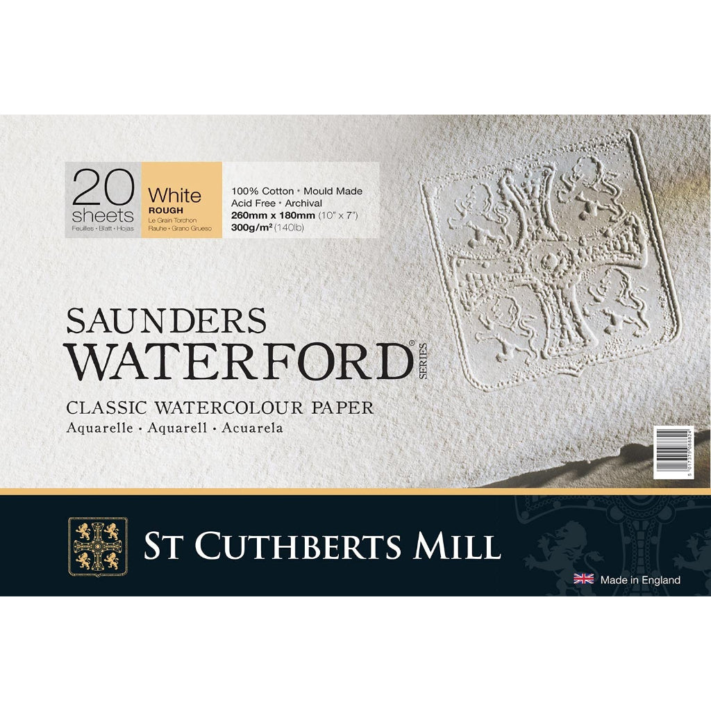 Saunders Waterford St. Cuthberts Mill Watercolor 300 Gsm Rough Natural White 26X18cm Paper Blocks- 20 Sheets