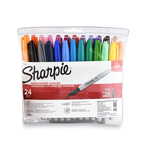 Sharpie Fine Tip Permanent Marker, Assorted, 24 Markers