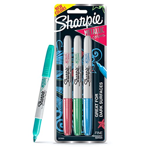 Sharpie Fine Tip Permanent Markers, Metallic, Assorted, 3 Markers