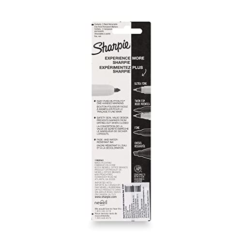 Sharpie Fine Tip Retractable Permanent Marker Black, 2 Markers