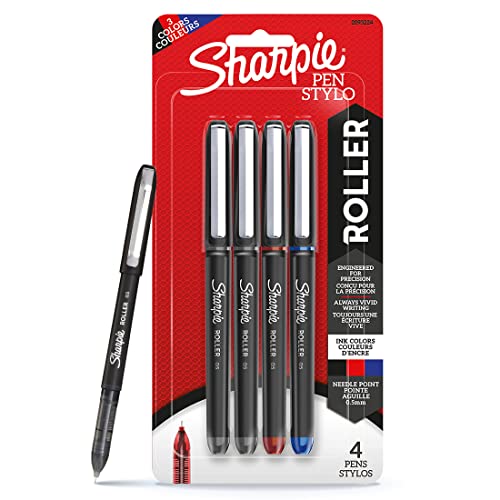 Sharpie Rollerball Pen Assorted, Needle Point (0.5Mm), 4 Markers
