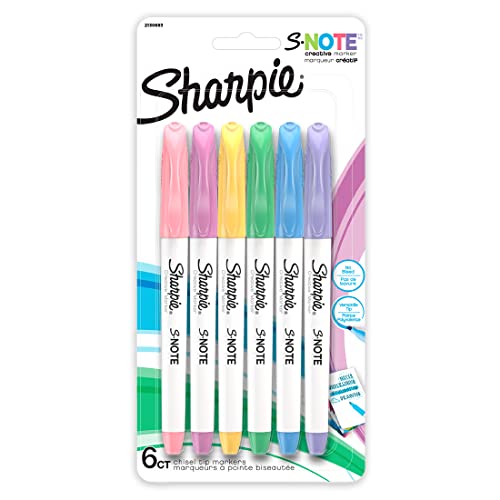 Sharpie S-Note Creative Markers, Chisel Tip,Assorted, 6 Markers