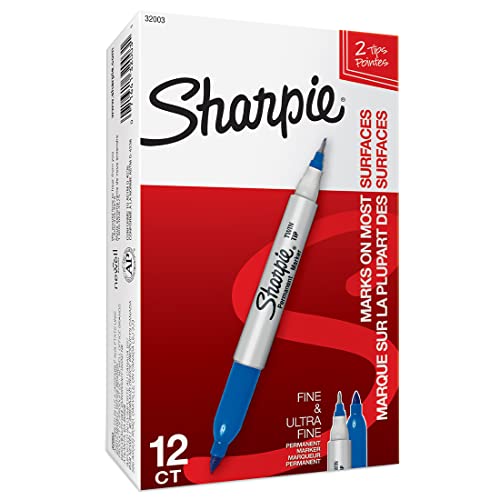 Sharpie Twin Tip Permanent Markers, Blue, 12 Markers
