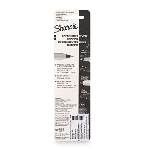 Sharpie Ultra Fine Tip Permanent Marker, Black, 2 Markers