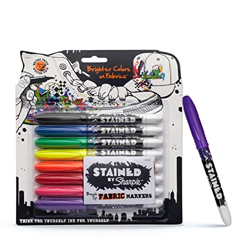 Stained - Sharpi+C10E Brush Tip Fabric Marker, Assorted, 8 Markers