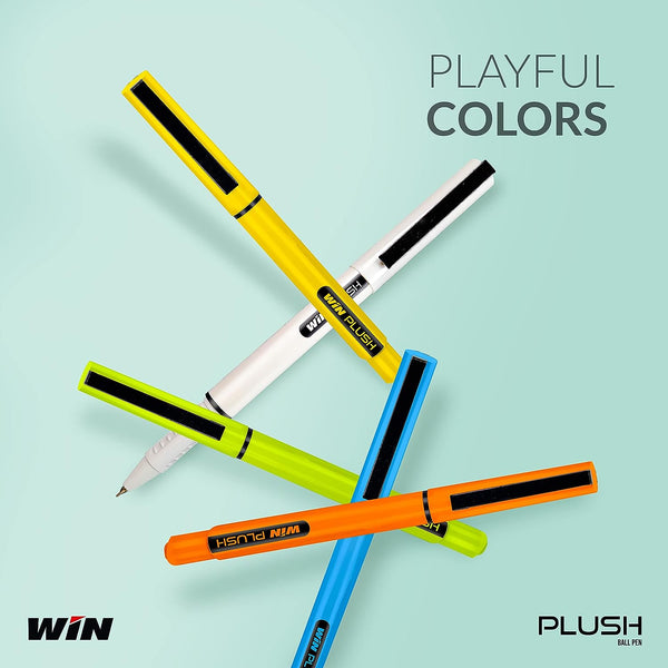 WIN Plush 0.7 mm Tip Ball Pens Set | Blue, Pack of 10 Pcs