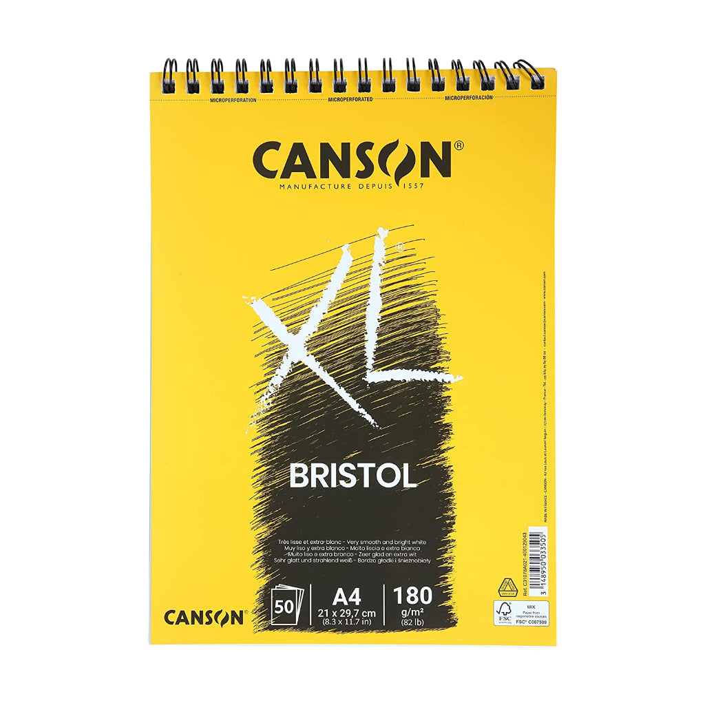 Canson Xl Bristol 180 Gsm Spiral Short Side A4 Pad (8.3X11.7 In- 50 Sheets)
