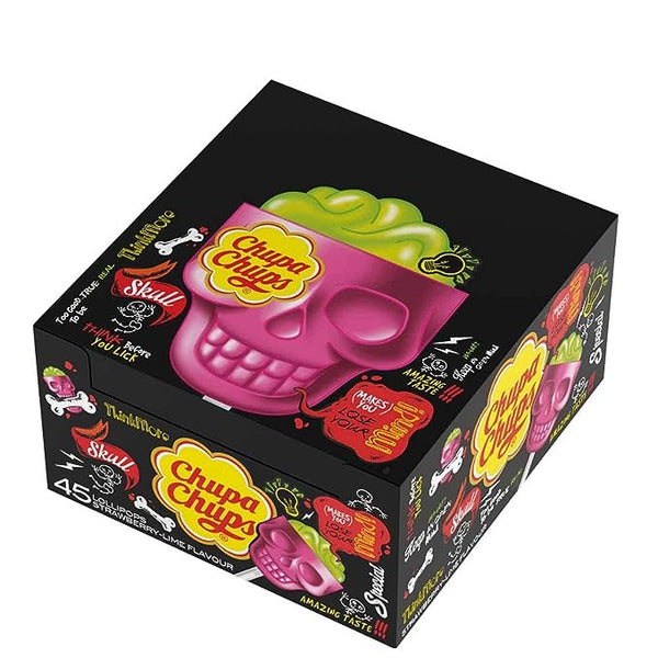Chupa Chups Skull Strawberry Lime Flavored Preservative Free 25 Skull Lolipop 15g Each
