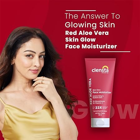 Clensta Red Aloe Vera Skin Glow Face Moisturizer With Red Aloe Vera & Vitamin C For Evens Skin Tone, Brightening & Glowing Skin For Men & Women 80 Gm
