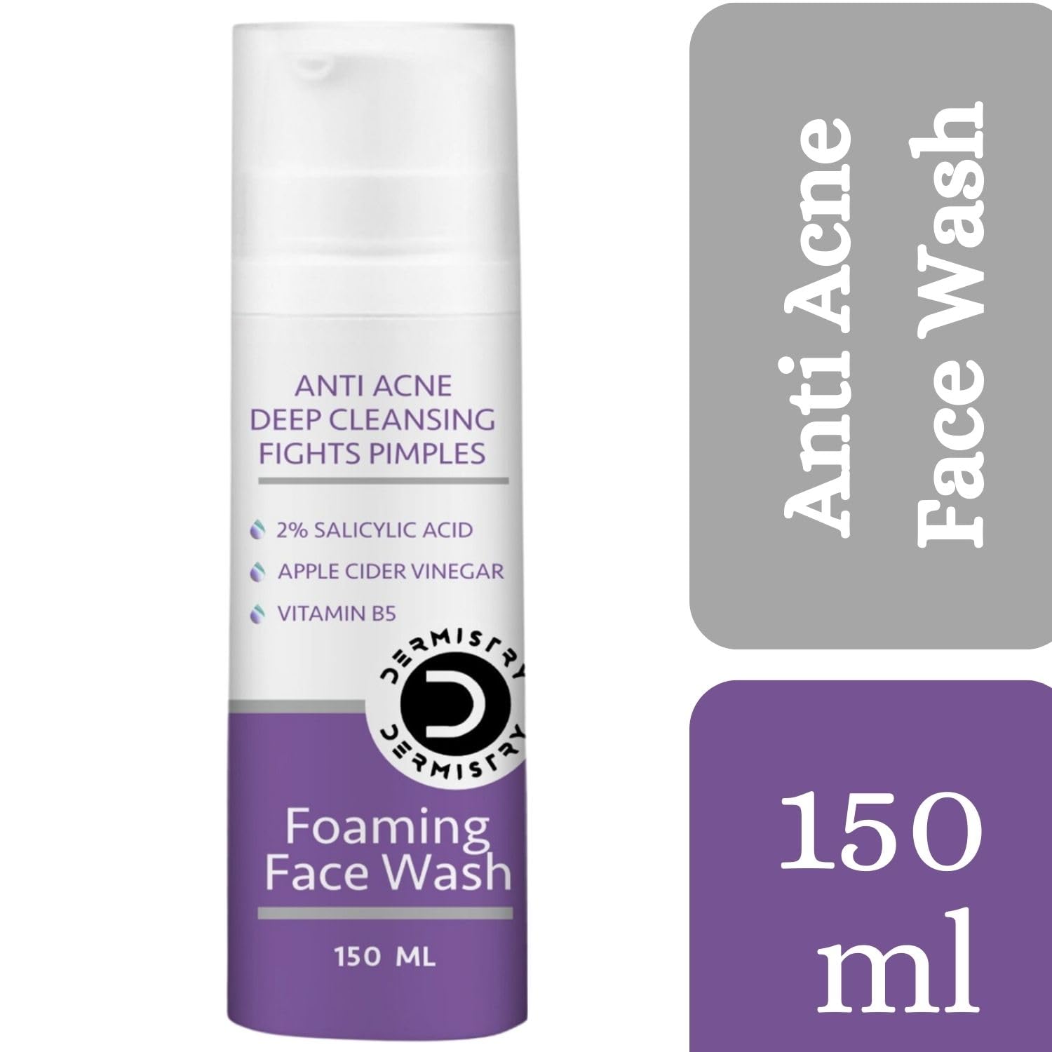 Dermistry 2% Salicylic Acid Niacinamide Anti Acne Deep Cleanser Oil Free Foaming Face Wash, Apple Cider, Zinc, Pimples & Excess Oil Removal for Oily Acne Pimple Prone Skin - Men Women