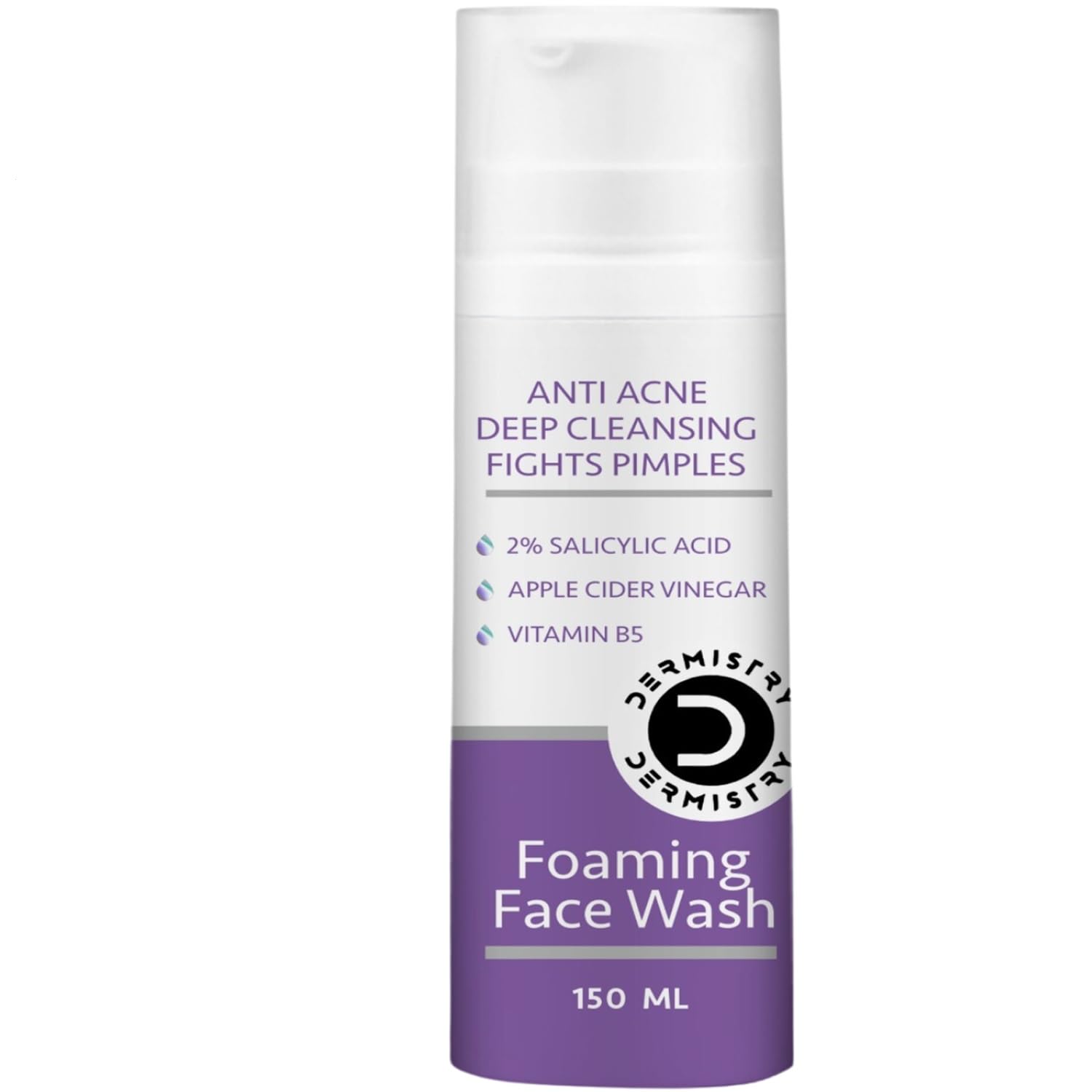 Dermistry 2% Salicylic Acid Niacinamide Anti Acne Deep Cleanser Oil Free Foaming Face Wash, Apple Cider, Zinc, Pimples & Excess Oil Removal for Oily Acne Pimple Prone Skin Men Women