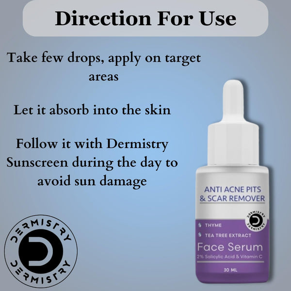 Dermistry 2% Salicylic Acid Niacinamide Anti Acne Face Serum For Pimples Blemishes Oily Acne Prone Skin-30ml