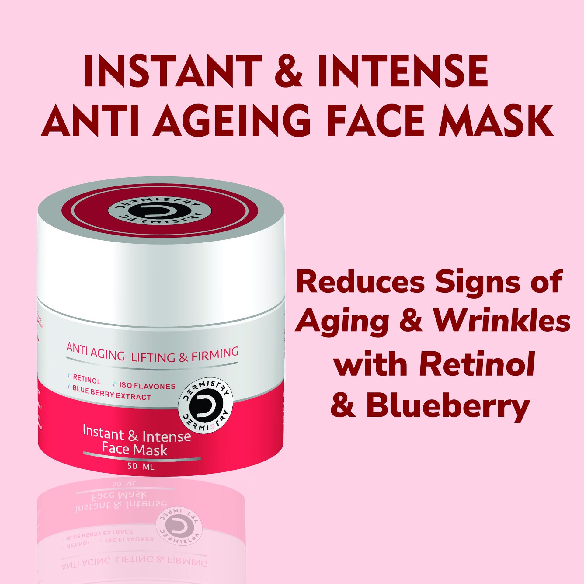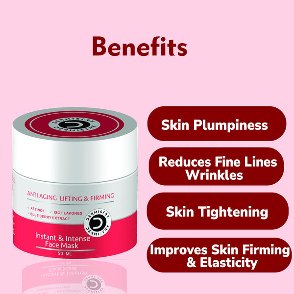 Dermistry Anti Aging Instant Skin Firming Lifting Tightening Retinol Blueberry Vit E Face Pack Mask For Ageing Fine Lines Wrinkles - 50ml