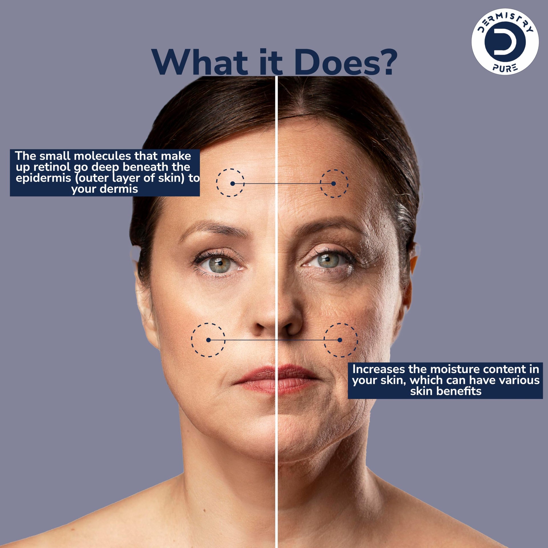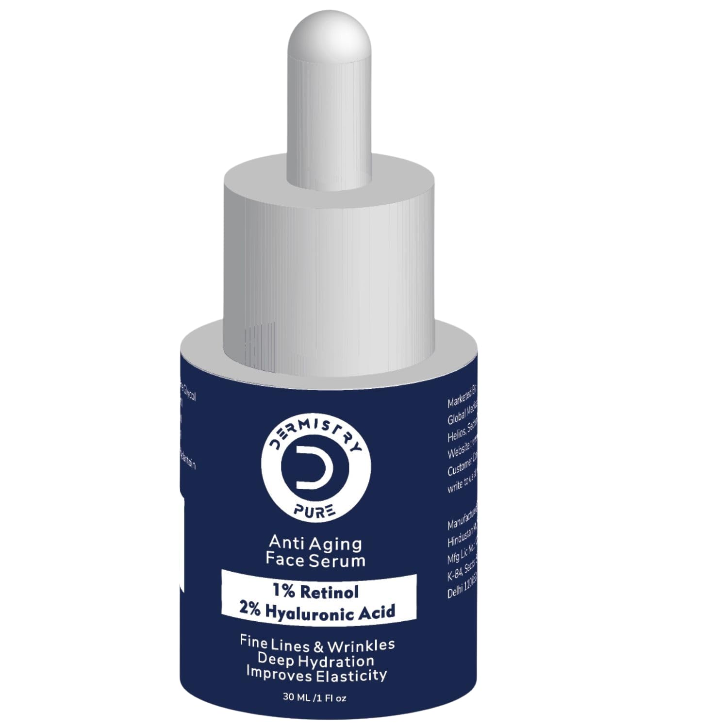 Dermistry Pure 1% Retinol 2% Hyaluronic Acid Anti Aging Skin Firming Tightening Moisturizer Face Serum Removes Ageing Fine Lines Wrinkles Deep Hydration Collagen Boost Improves Elasticity 30ml