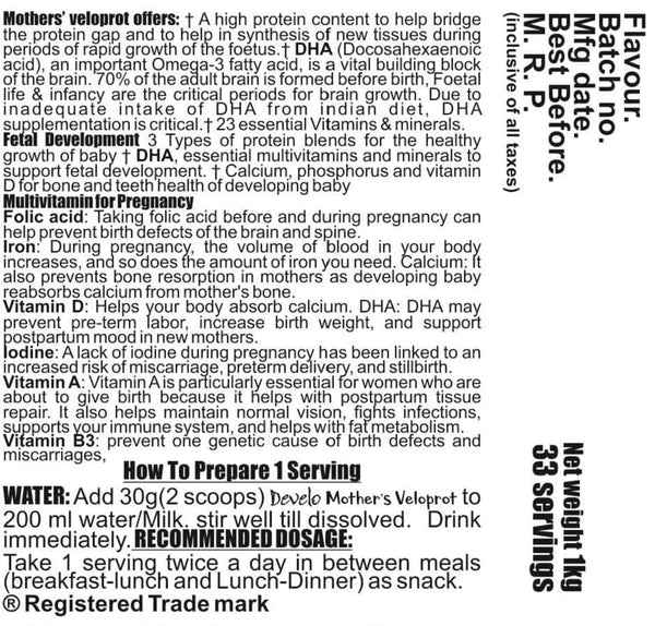 Develo Pregnancy & Lactation Protein Powder, Supplement for Pregnant Women & Lactating/Breastfeeding Mothers -1kg (Chocolate)