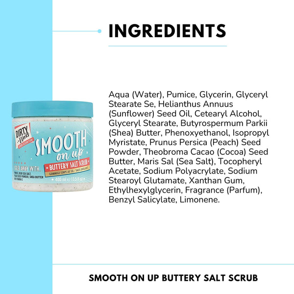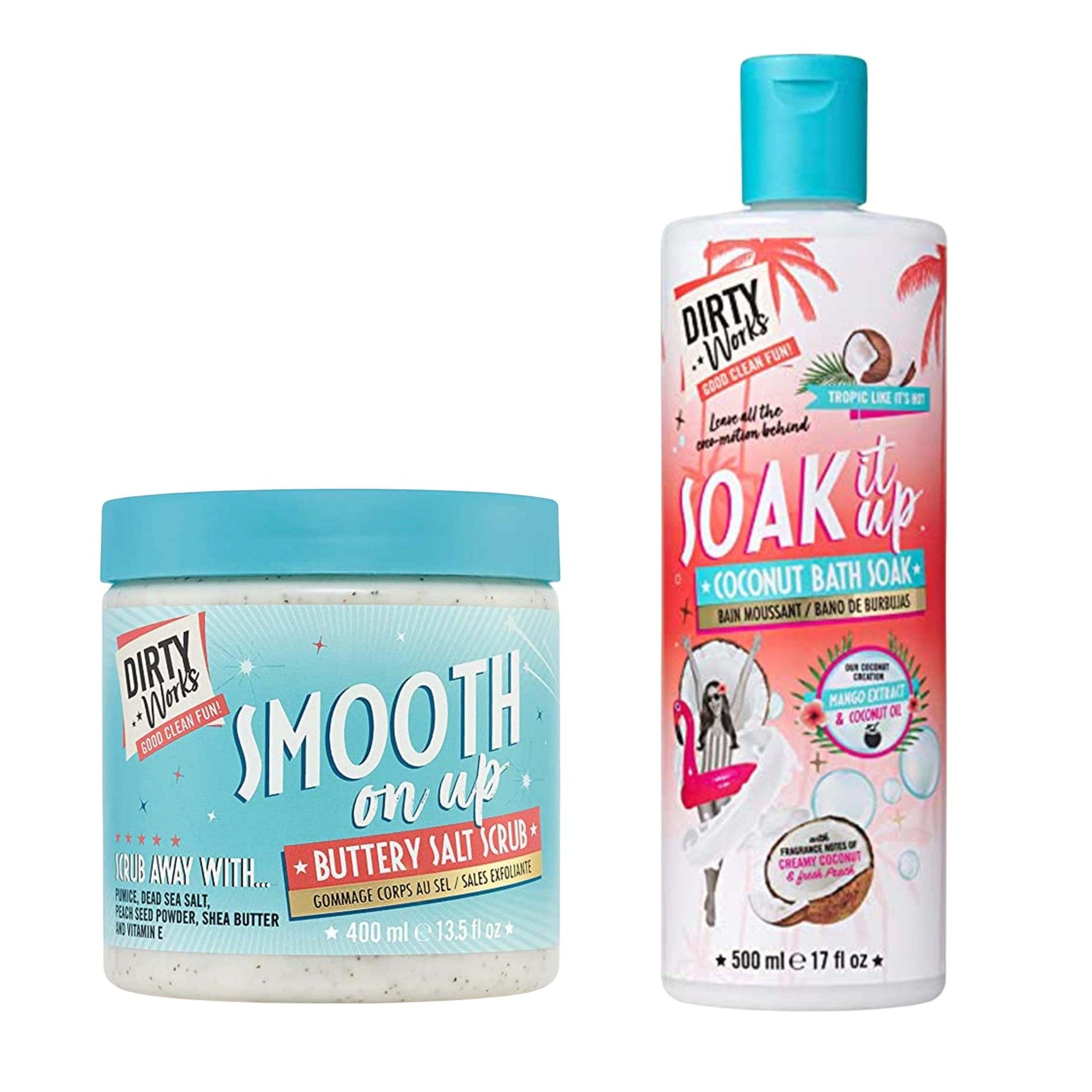 Dirty Works Smooth On Up Buttery Salt Scrub & Soak It Up Coconut Bath Soak | Exfoliationg Salt Scrub & Hydrating Coconut Bath Soak | For Smooth, Soft & Moisturized Skin - Combo of 2