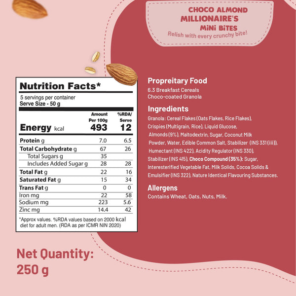 Fit & Flex Choco Almond Granola Mini Bites Oat Rich,Healthy Chocolate Snacks With Rice Crispies Rich Fibre And High Protein Granola Bars Treats For Kids | As Seen On Shark Tank India|250Gm (Pack Of 1)