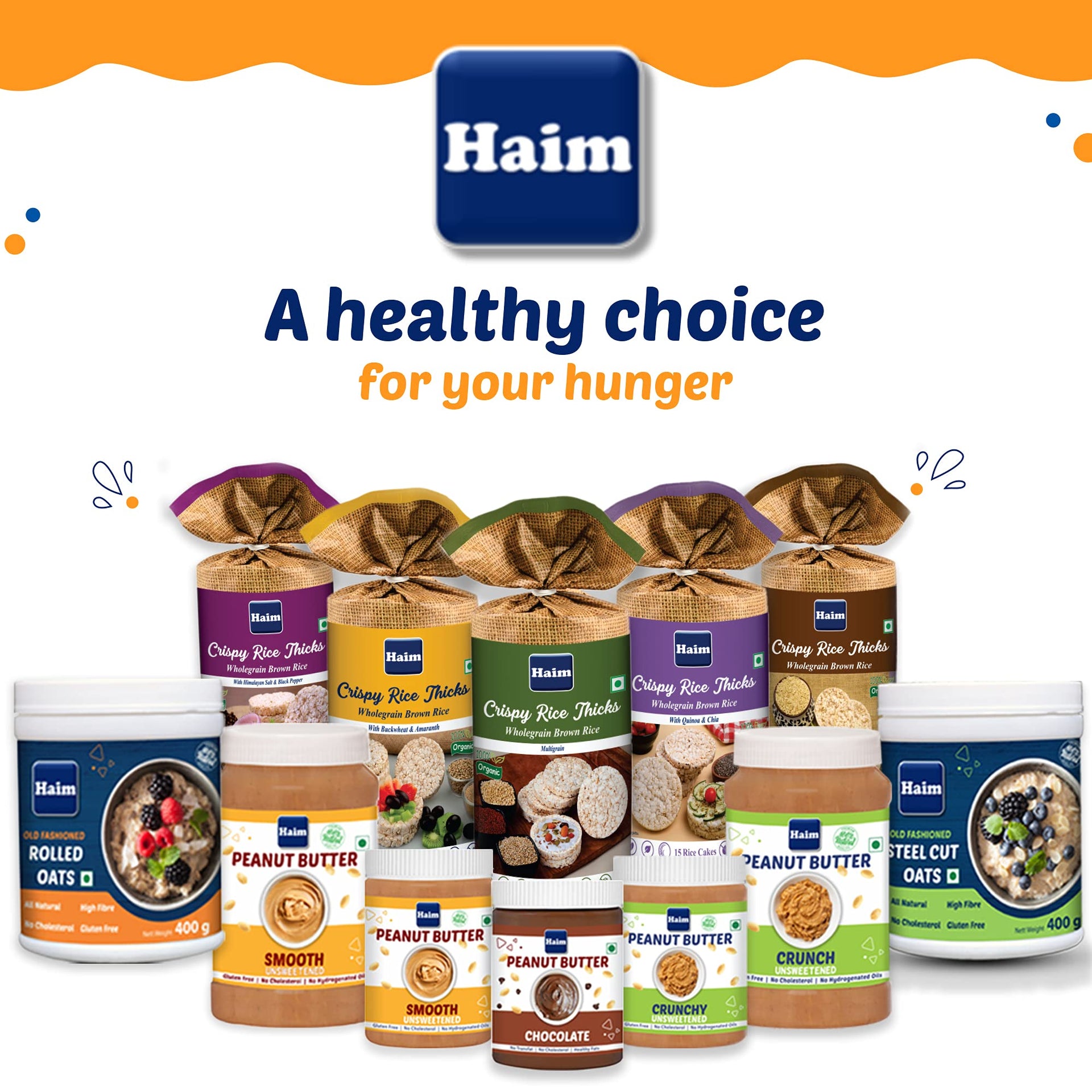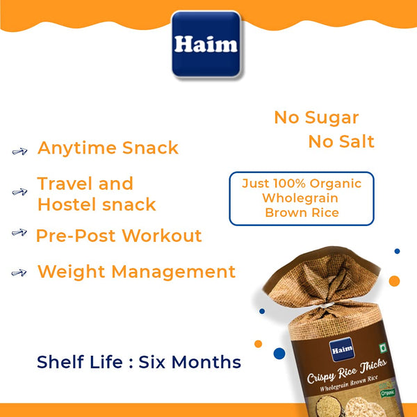 HAIM Organic Crispy Rice Thick Wholegrain Brown Rice Cakes Unsalted (Vegan, All Natural, Gluten Free), 2 X 110 g