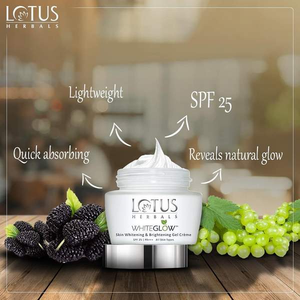 Lotus Herbals WhiteGlow Skin Whitening And Brightening Gel, Face Cream with SPF-25 PA+++