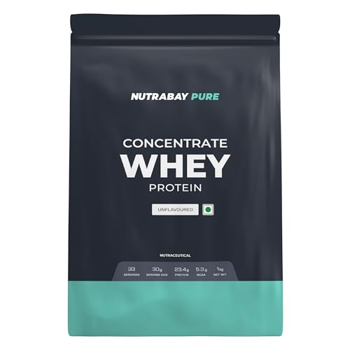 NUTRABAY Pure 100% Raw Whey Protein Concentrate, 23.4g Protein - 1Kg, Unflavoured