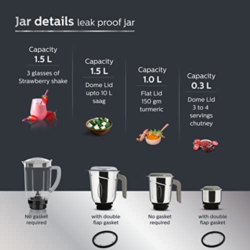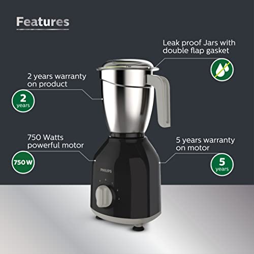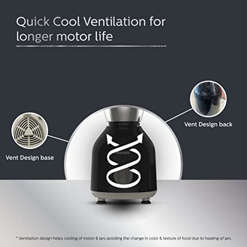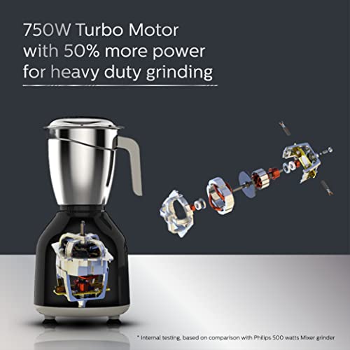 Philips HL7759/00 Mixer Grinder, 750W Turbo Motor, 4 Jars (Black), Quick cool ventilation for longer motor life