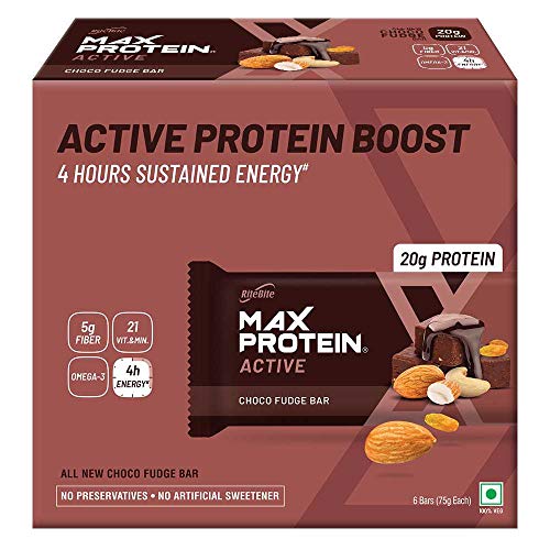 RiteBite Max Protein Active Choco Fudge Protein Bars (Pack of 6) * 75gm each 20g Protein Blend, Fiber, Vitamins & Minerals , No Preservatives, 100% Veg, For Energy, Fitness & Immunity